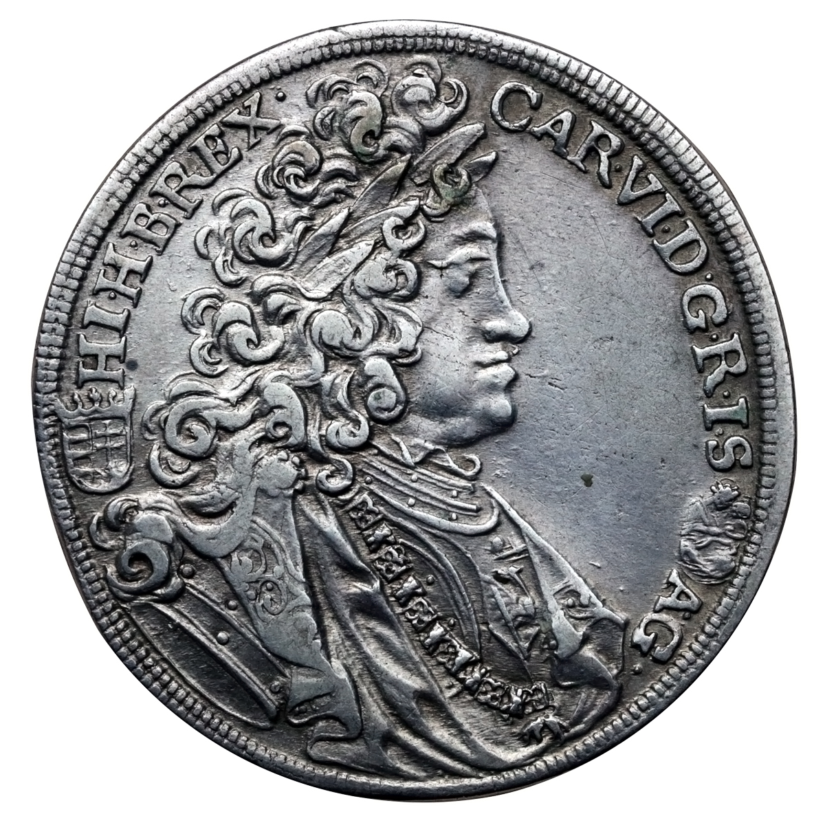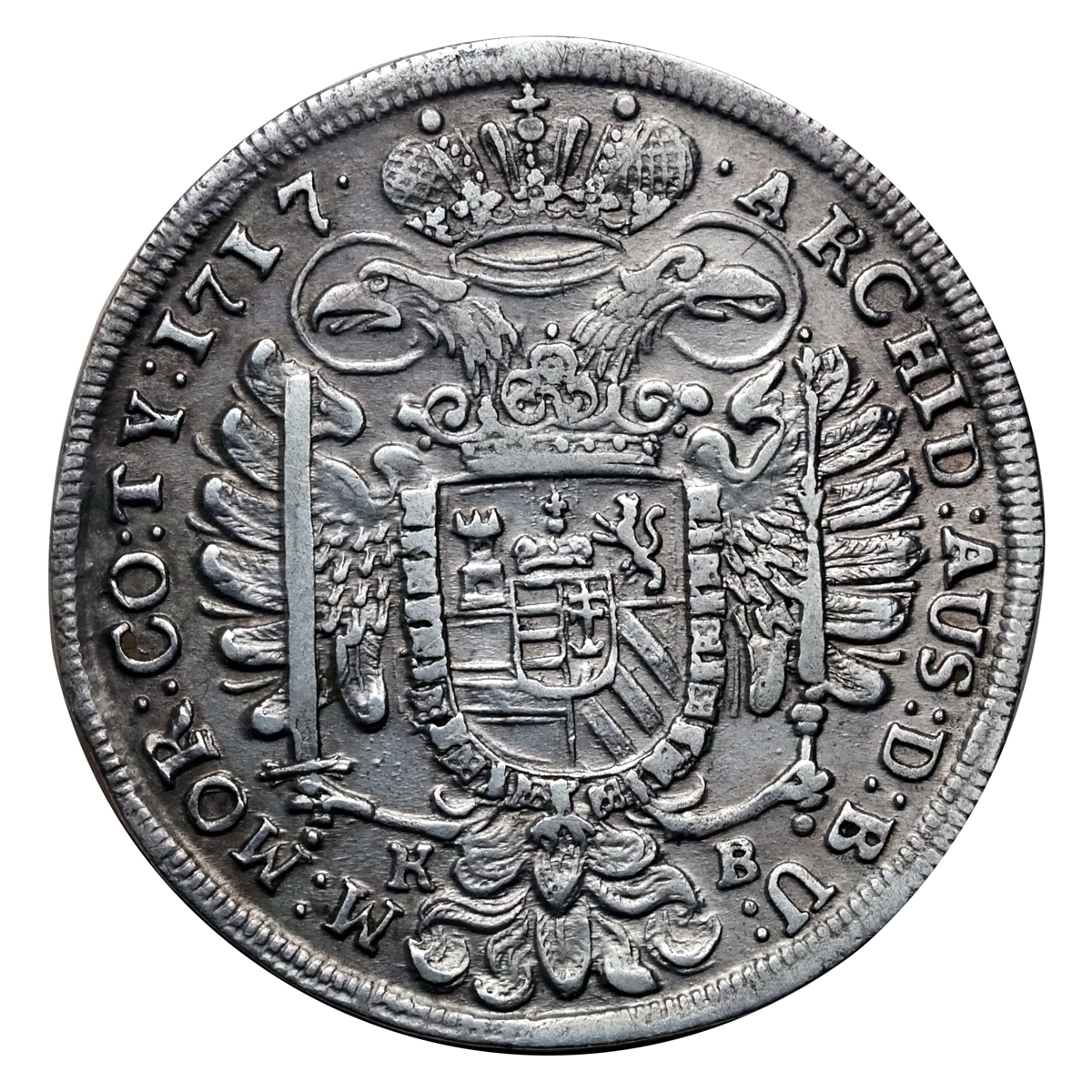 Vzácnější 1/2 tolar z roku 1717, mincovna Kremnice. Dr. vady střížku a rysečky, pěkná zachovalost. Neměl očko, ani závěs. Mince je originál, za což ručíme doživotně vrácením peněz.