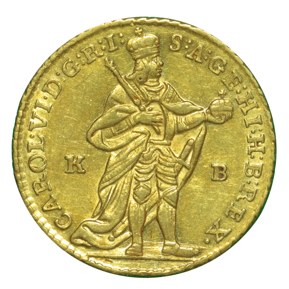Dukát Karla VI. z mincovny Kremnice. Vzácnější ročník, velmi hezká zachovalost, minimum mikrorysek. Neměl očko, ani závěs. Mince je originál, za což ručíme doživotně vrácením peněz.