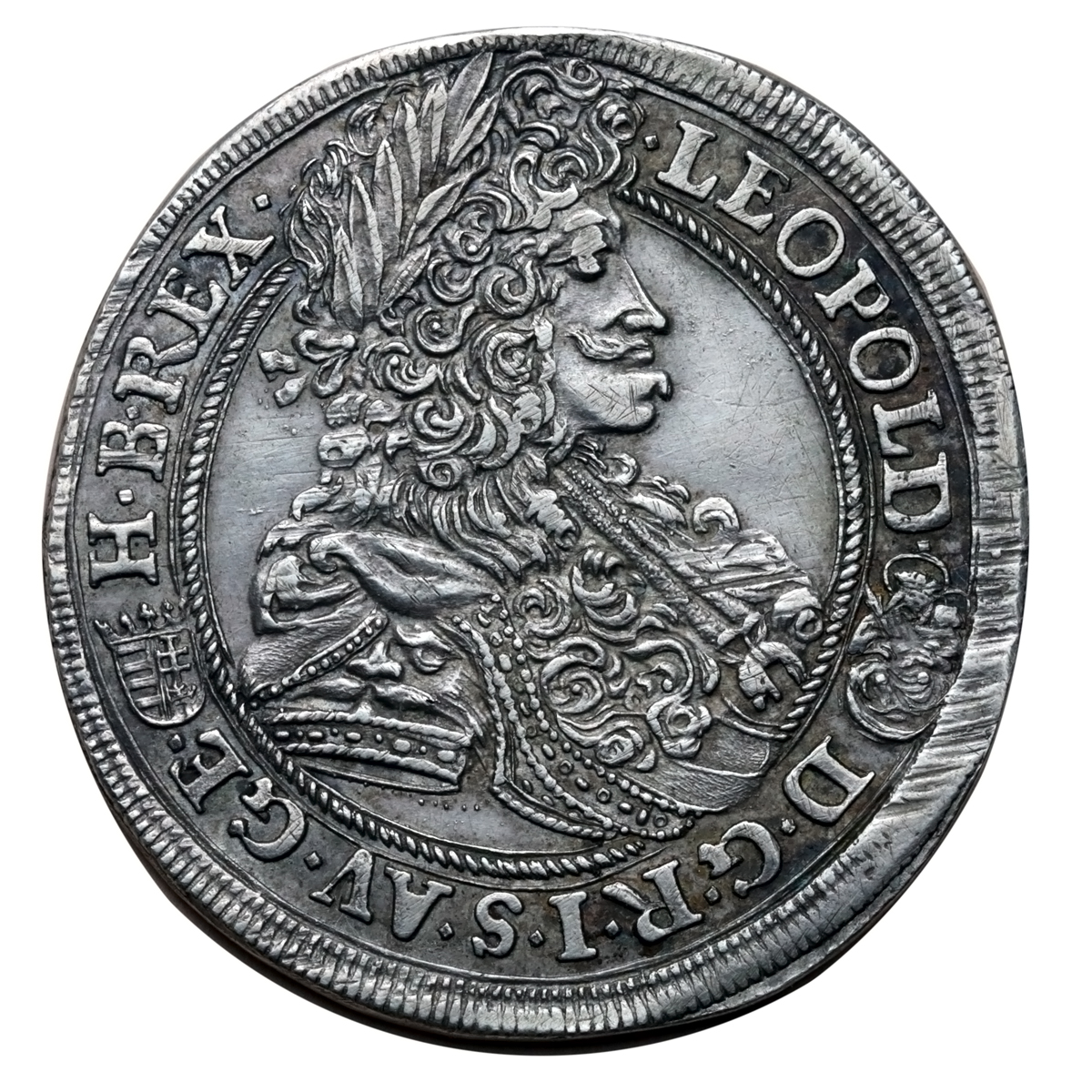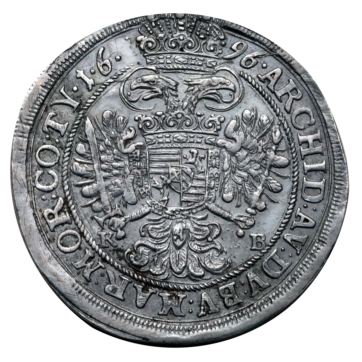 1/2 tolar císaře Leopolda z roku 1696, mincovna Kremnice. V averzu dr. rysky, justovaný. Velmi hezká zachovalost, pěkná patina. Neměl očko, ani závěs. Mince je originál, za což ručíme doživotně vrácením peněz.